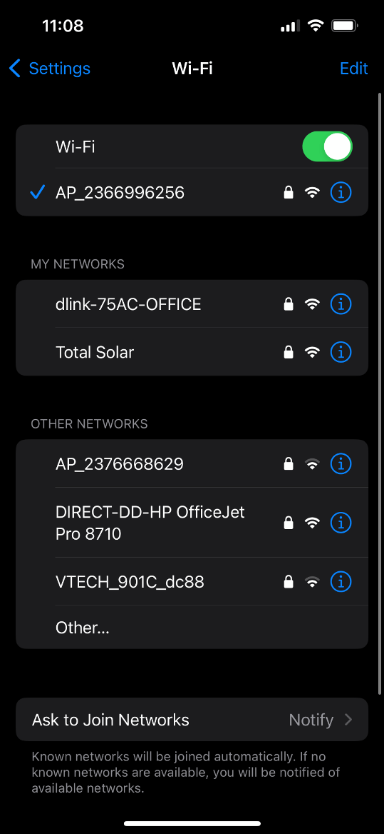 If you have changed your Wifi modem or changed your Wifi password, you may notice that your inverter is no longer connected to the internet, and your plant will be showing as offline in your app. It is important that you keep your inverter connected to the internet so we can easily troubleshoot issues for you remotely. The good news is that it is a simple process to reconnect your logger. You will need an iPhone or an iPad. If you don’t have one, you can borrow one from a friend or a family member just to assist you with setting up your inverter.