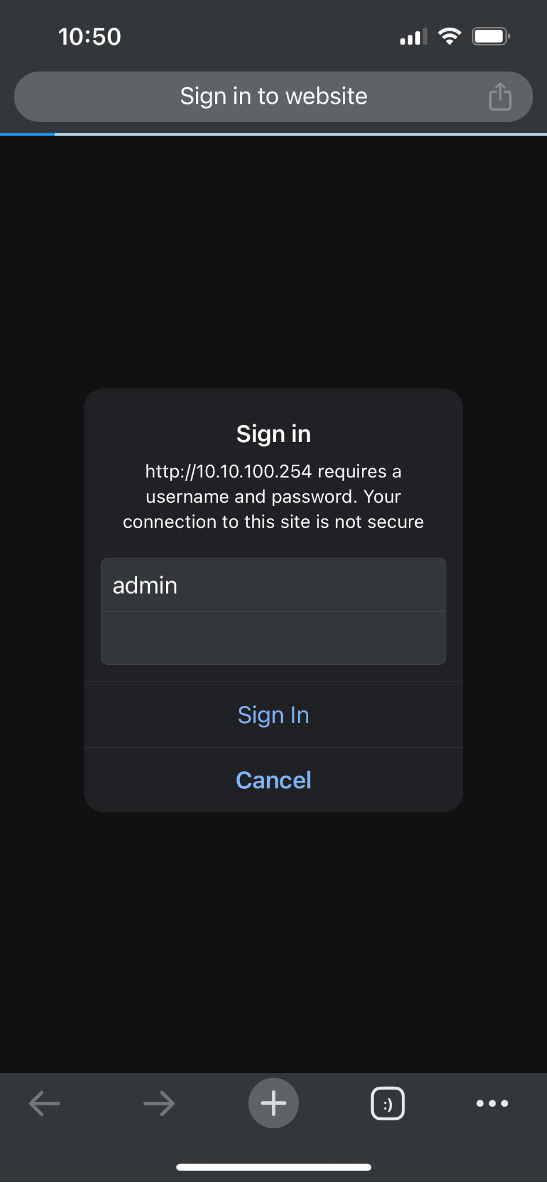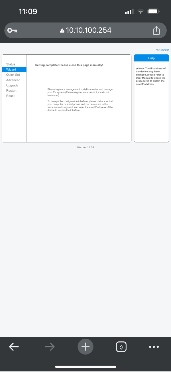 Once you are connected to the inverter’s network, open up a web browser and type in 10.10.100.254. The log in for this portal is username: admin, and password: admin.