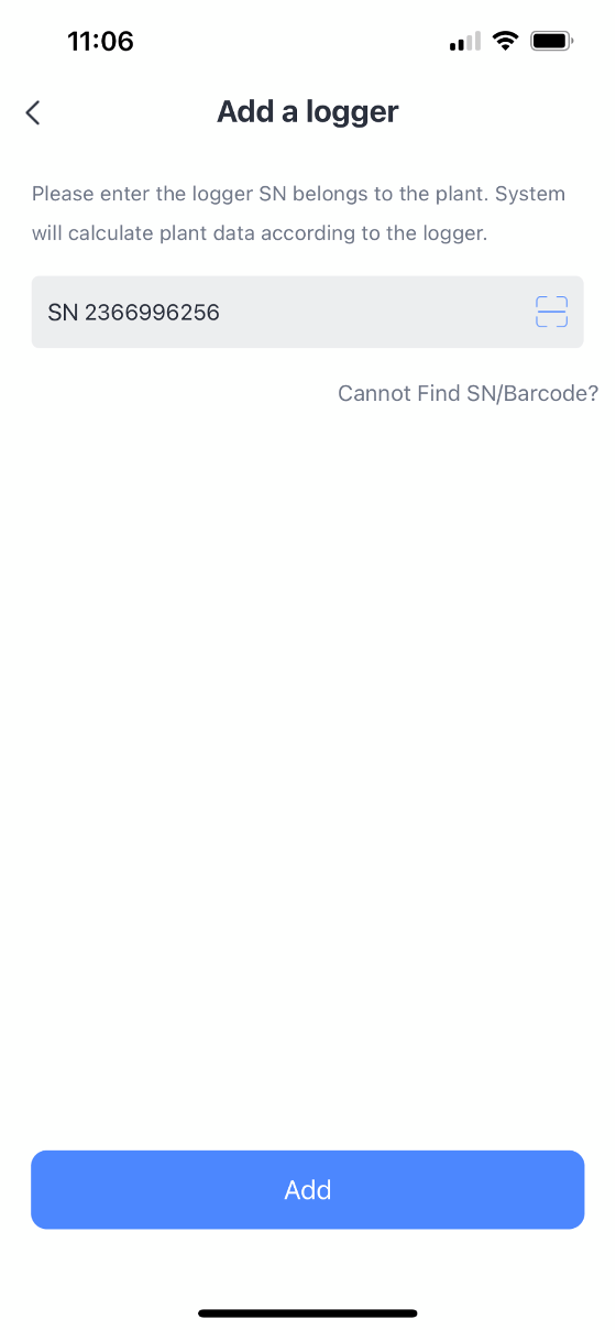 On the next screen, enter the 10 digit SN from your logger, then click Add.