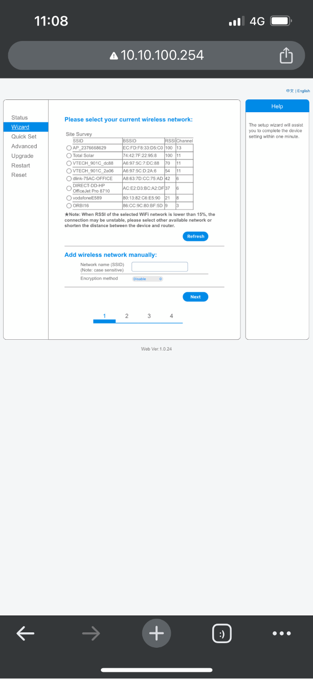 Once your home Wifi has been connected, you will need to set up the logger. Go into the Wifi settings on your phone or tablet, and you will see your 10 digit SN as an available network. Connect to the network, and enter the password located on the logger.